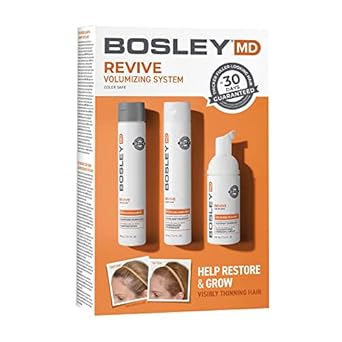 Bosley's BosRevive Color Safe 30 Day Kit help restore thinning hair with this simple, 3-step system including BosRevive Nourishing Shampoo, Volumizing Conditioner and Thickening Treatment.